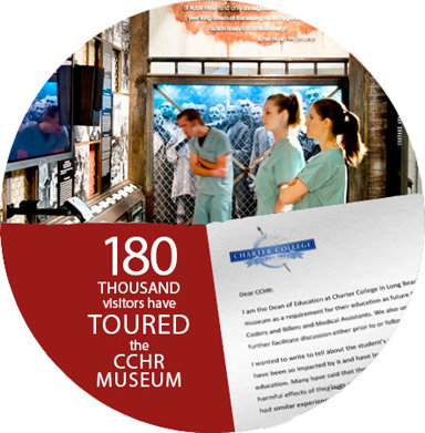 Citizens Commission on Human Rights International headquarters in Los Angeles houses a museum presenting the history of psychiatric brutality from its early methods of torture to present-day restraints and mind-altering drugs. Museum visitors include students and professionals in nursing, pharmacy, medicine and criminal justice, as well as human rights and civil rights advocates. Dozens of colleges include the CCHR museum in their official curriculum for student credit.