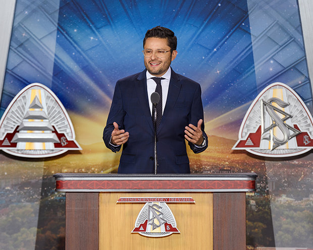 “I’ve been privileged to deliver the precepts into barrios and congregations of faith. I’ve delivered them into juvenile prisons. And, just as I personally experienced, I witnessed others have their own recognition of the truth. A truth as certain as the ground beneath one’s feet. At which point, it was undeniable: L. Ron Hubbard has written a universal language. And we owe it to humanity to tell people of every background, every faith, everywhere, ‘You can discover your own way to happiness!’”