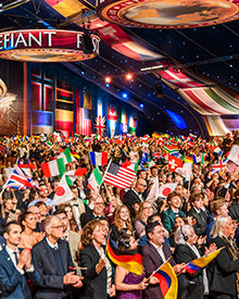 As the global congregation traversed the vibrant ruby-red carpet, they reveled in the enormous Grand Marquee and nearly blew the roof off as Mr. Miscavige arrived onstage to a ground-rumbling ovation lasting minutes. It was an expression not only of admiration for Scientology’s leader, but an acknowledgment of the enormity of the celebration at hand.