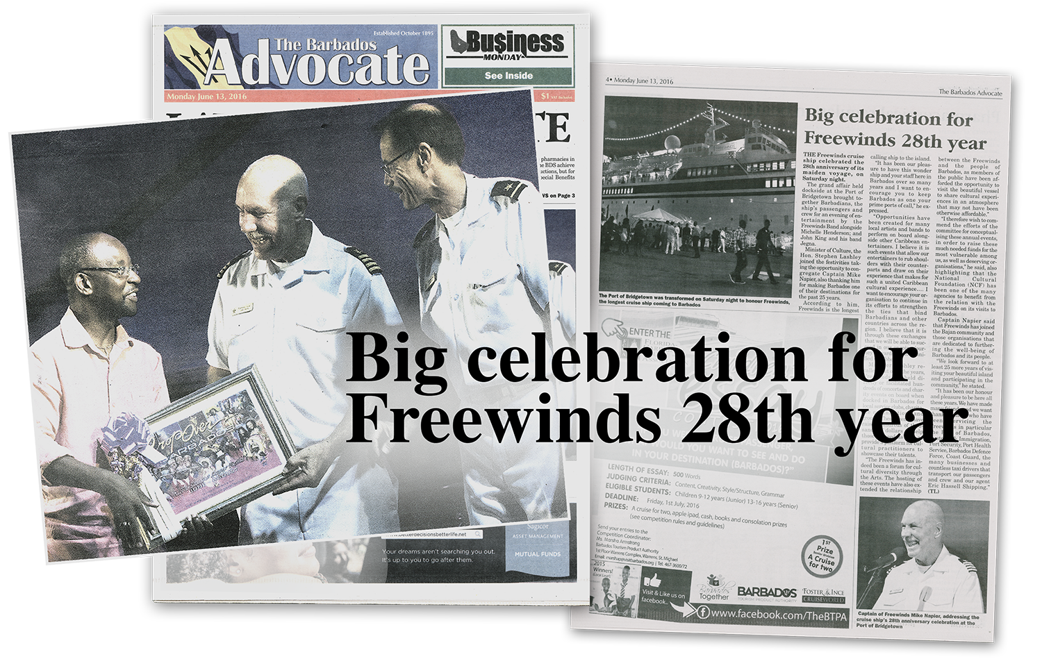 - And the Royal Dutch Navy of Aruba honoring the Freewinds’ now total “27 years of service.”
